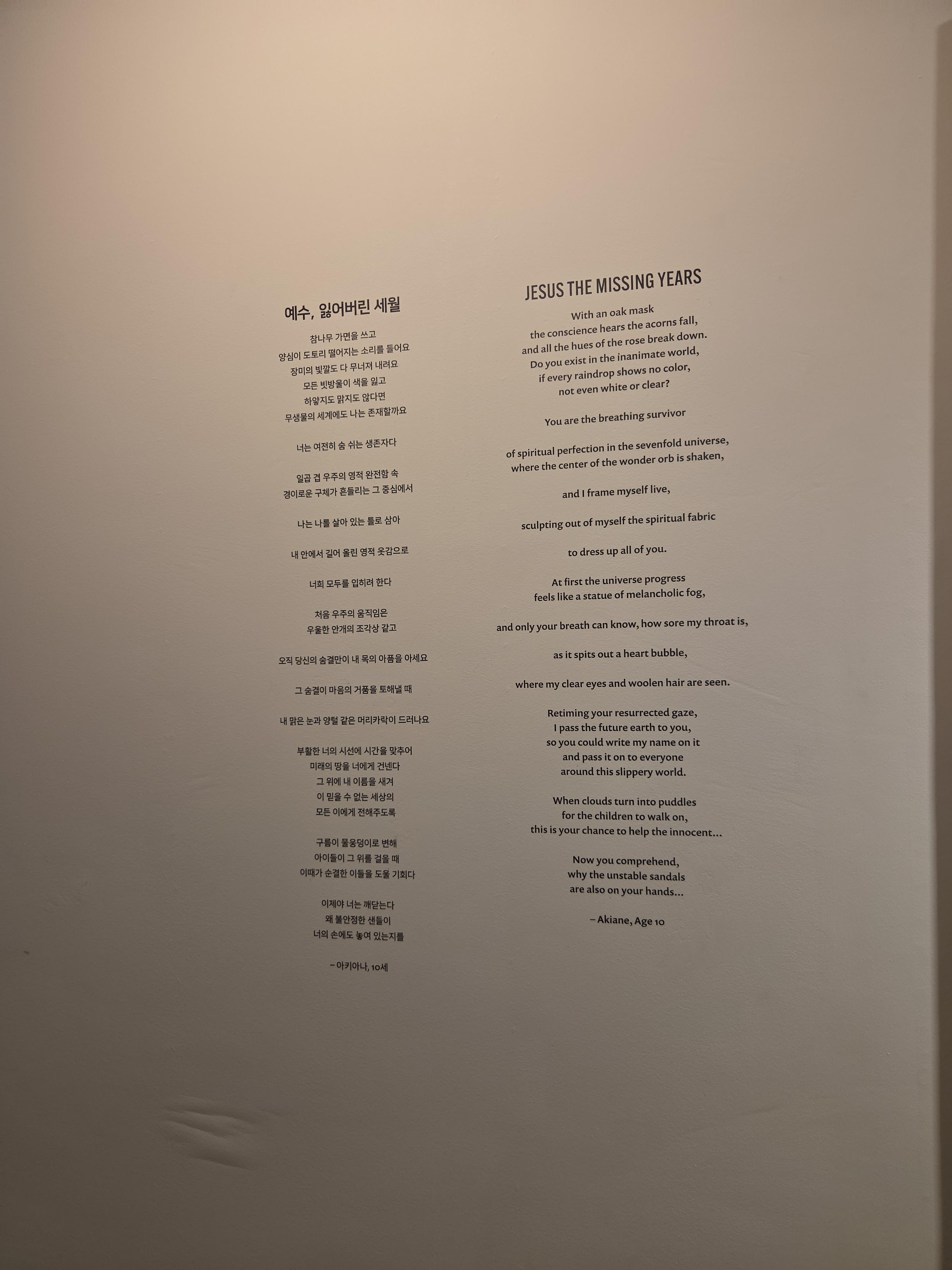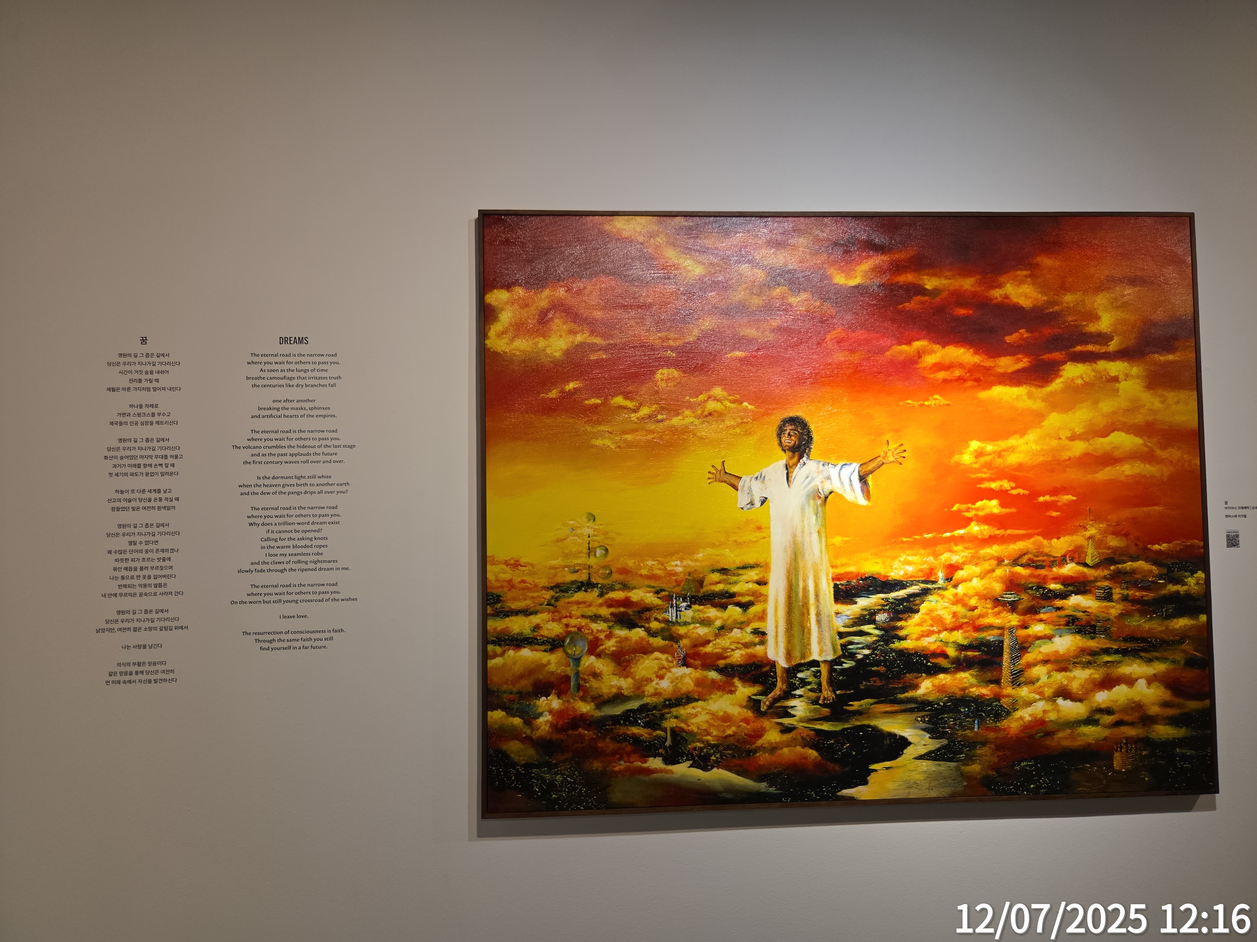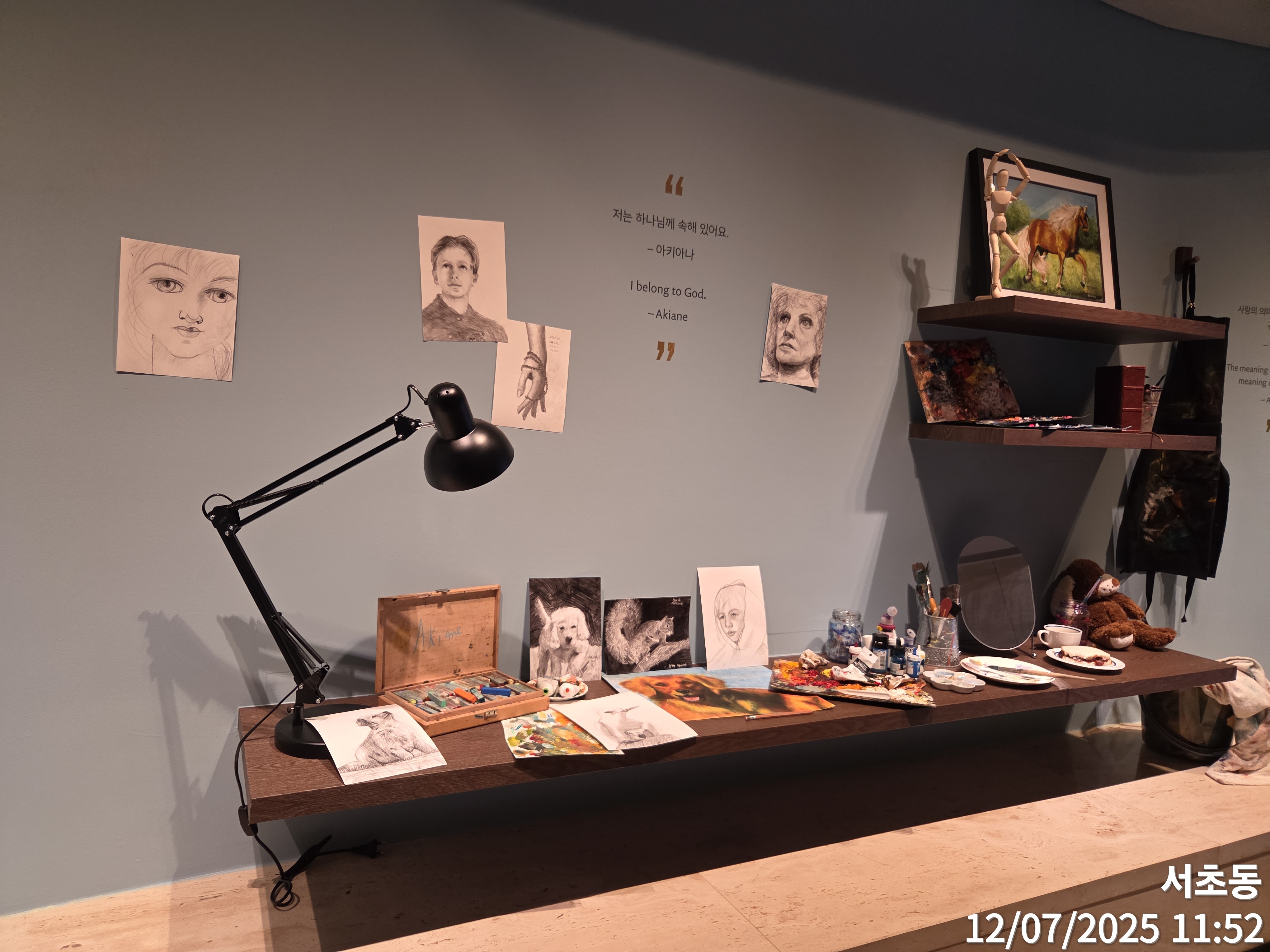 -어제 교회에서 아키아나 크래메릭의 작품을 관람했습니다. 어릴 때부터 하나님을 본 것을 그림으로 표현했다는 이야기를 알고 있었기에, 작품 앞에 서는 순간부터 묘한 울림이 느껴졌습니다. 특히 눈빛을 묘사한 방식은 현실을 넘어 영적인 깊이를 전달해주는 듯했고, 인물의 얼굴에서 말로 설명할 수 없는 평안과 위엄이 전해졌습니다. 그림을 보고 있는 동안, 제 안의 불안과 복잡한 감정들이 잠시 멈추고, 오랜만에 ‘쉼’을 경험했습니다. 또한 예배 후 감상이라 더욱 은혜와 감동이 몰려왔고, 자녀 같은 느낌도 들어서 참으로 이 세상에는 자랑스런 자녀들이 많다는 것을 더욱 깨닫게 되었습니다. 영상으로 작품을 설명도 해주고 있어 쉽게 이해가 되는 전시였고, 주님을 깊이 묵상하며 그리는 그림으로 여겨져서 더욱 마음에 와 닿는 작품이라 하나 하나 깊이 있게 감상해 보았으며, 이렇게 좋은 그림을 감상할 수 있는 것도 하나님의 은혜라는 생각이 들었습니다.